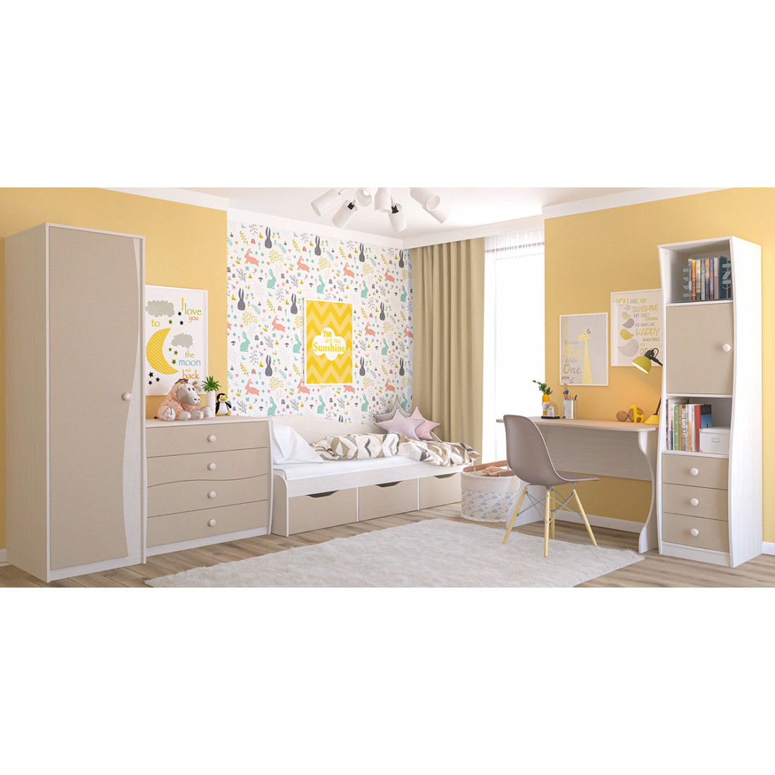 Двухстворчатый детский распашной шкаф для одежды со штангой Комби МН-211-16 капучино