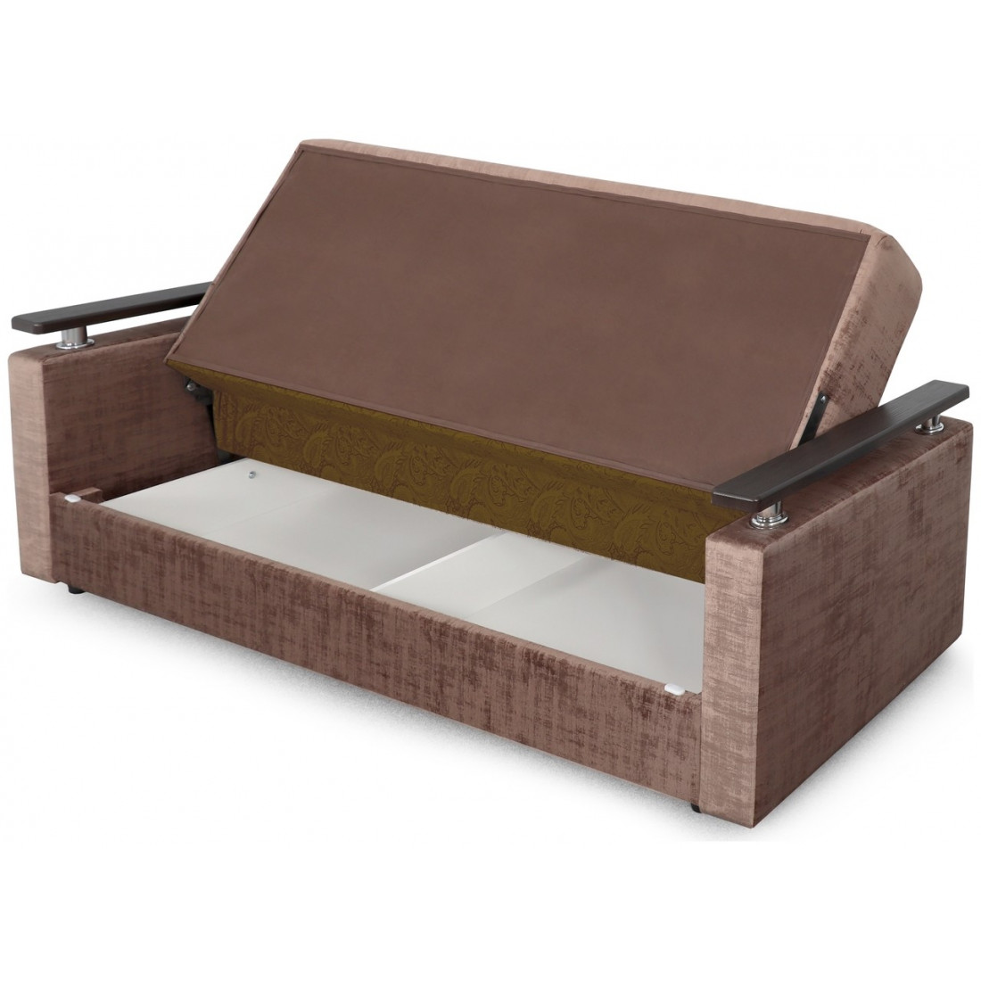 Под сидением дивана находится вместительный ящик из ЛДСП для белья, он экономит пространство в комнате и идеально подходит для хранения вещей.