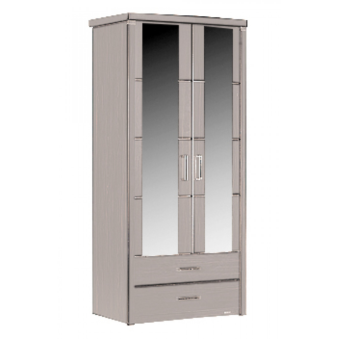 Двухстворчатый распашной шкаф для одежды MIRA-22 (белый) серии Мира от Беллона наделен классической функциональной конструкцией: в нем предусмотрены ящики и верхние полки для хранения личных вещей, центральная зона отведена под одежду на плечиках. Купить практичный платяной шкаф с двумя зеркалами на распашных сворках и выдвижными ящиками можно отдельно.