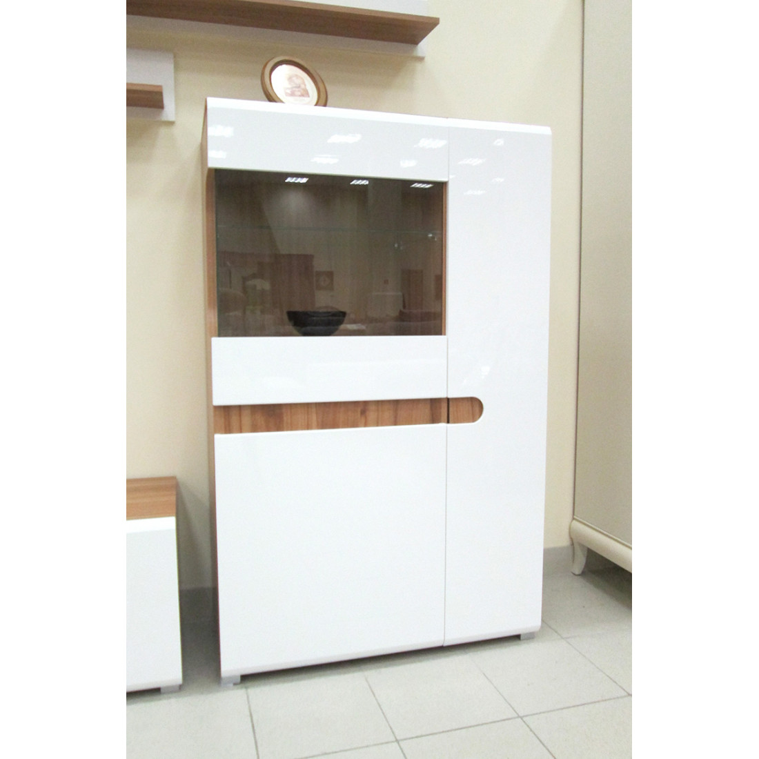 Двухстворчатый шкаф витрина для посуды в гостиную Леонардо МН-026-01 белый правый