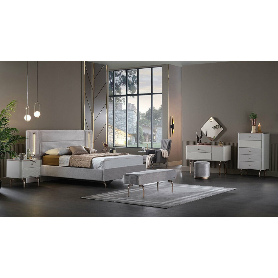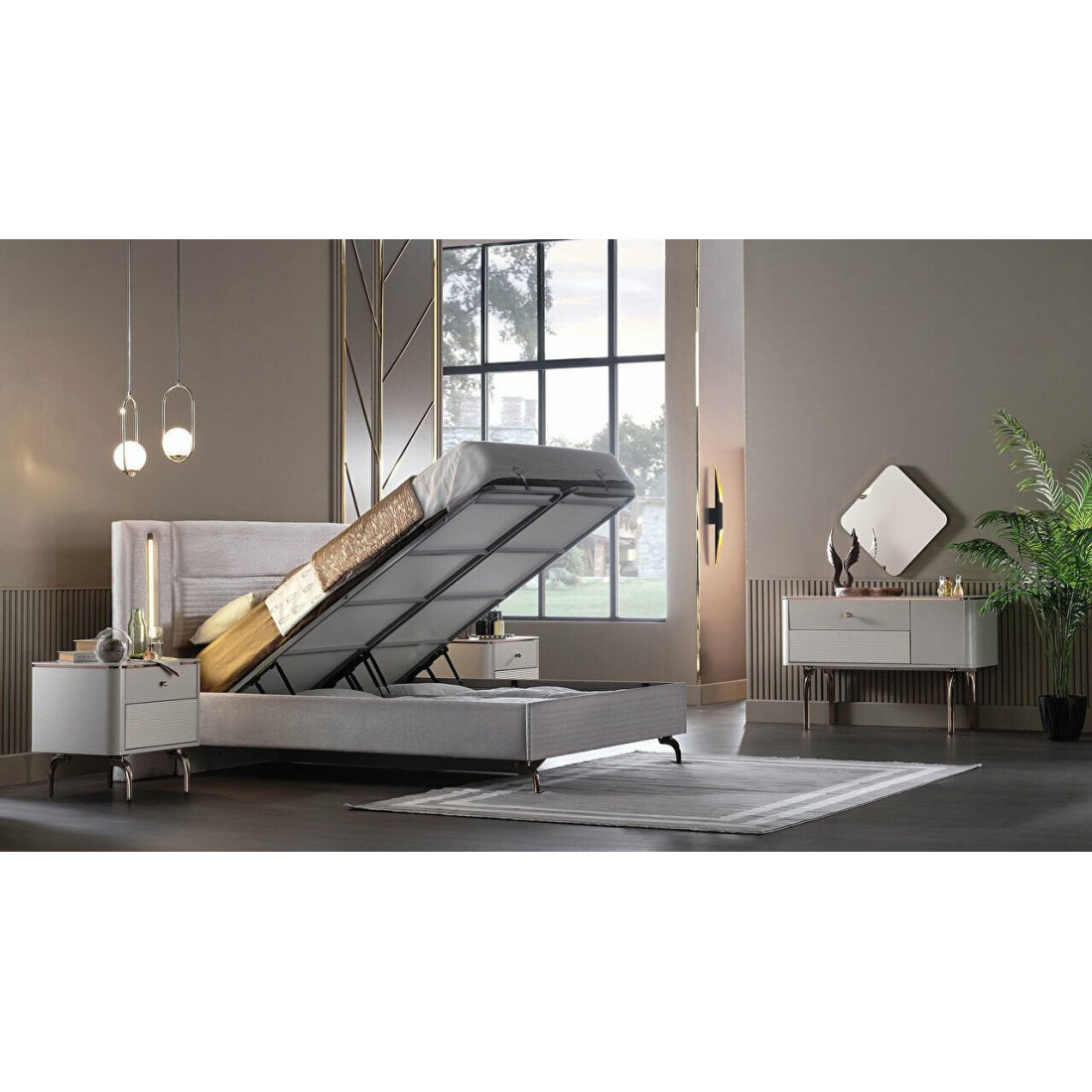 Двуспальная кровать с подъемным механизмом BOGEMIA (жемчуг)