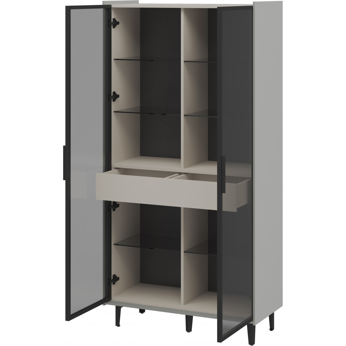 Витрина: стекло с тёмной тонировкой, аллюминевая рамка,профиль 20х20мм, цвет: черный брашированный