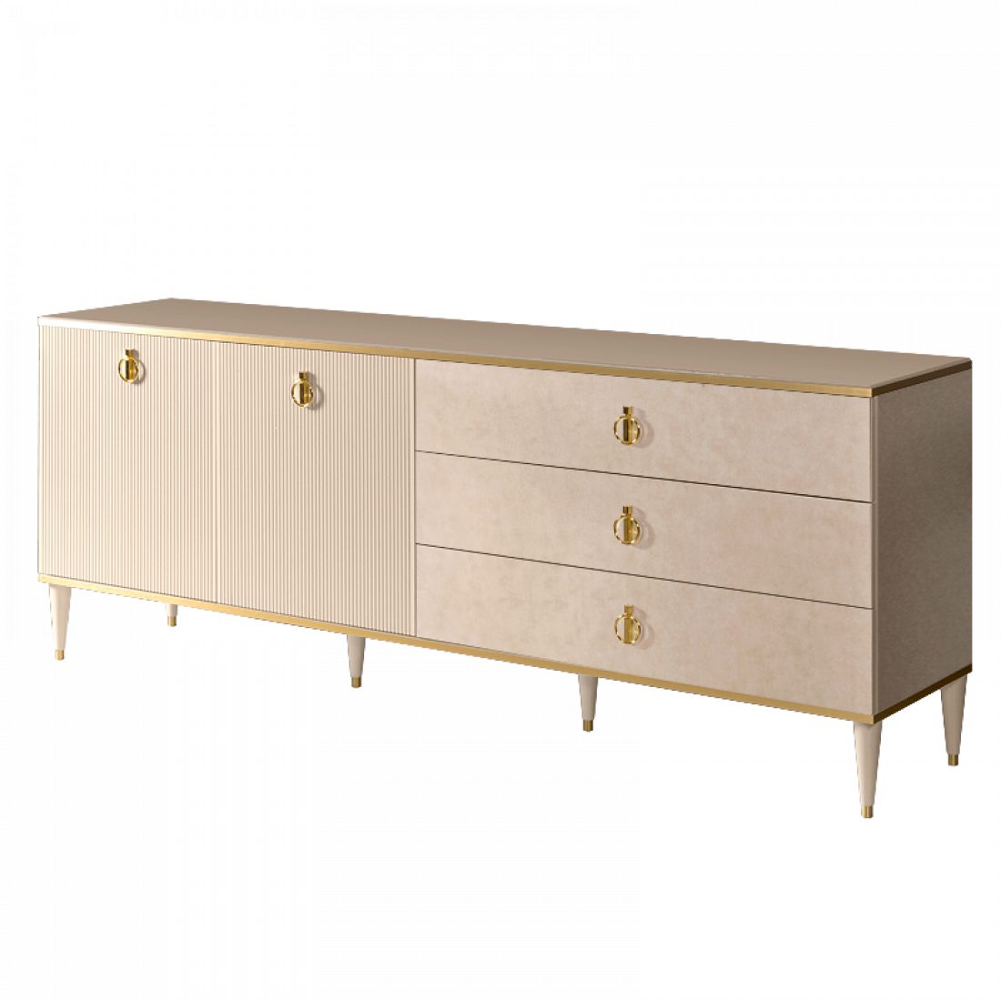 Оригинальным дизайнерским ходом стало решение «поставить»  комод Rimini Solo на высокие деревянные ножки с латунными или алюминиевыми наконечниками.