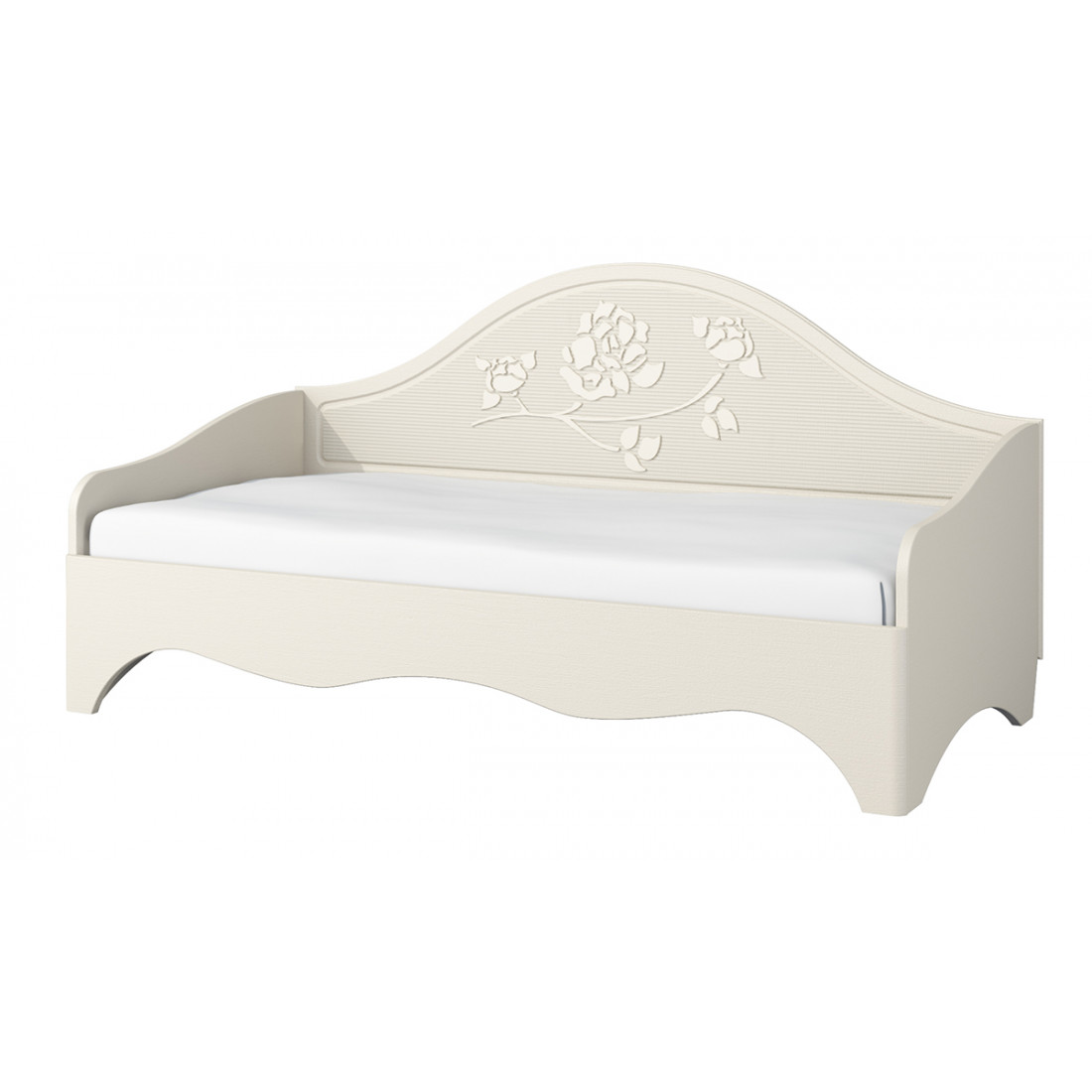 Детская односпальная кровать МН-218-12 серии Астория от Мебель-Неман кокетливо изящна и неповторима. Аристократичности и схожести с предметами обстановки прошлого столетия модели придает резная форма спинки и основания, изысканная резьба и оттенок, искусно передающий фактуру крашеного дерева. Купить односпальную кровать можно в спальню-будуар девушки.