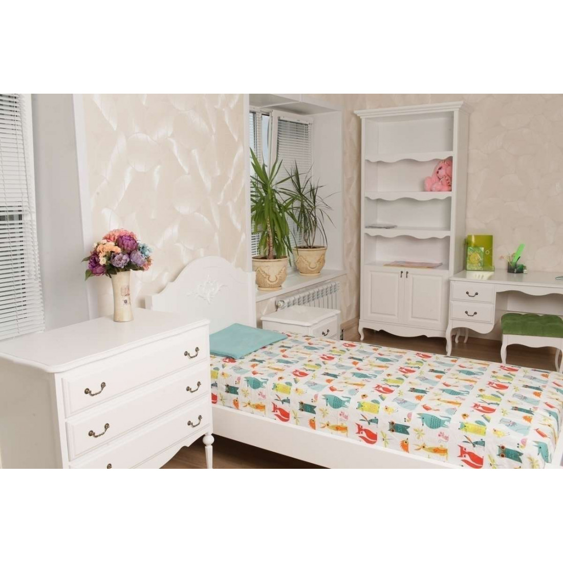 Кровать оснащена ортопедическим основанием для матраса — ламелями.