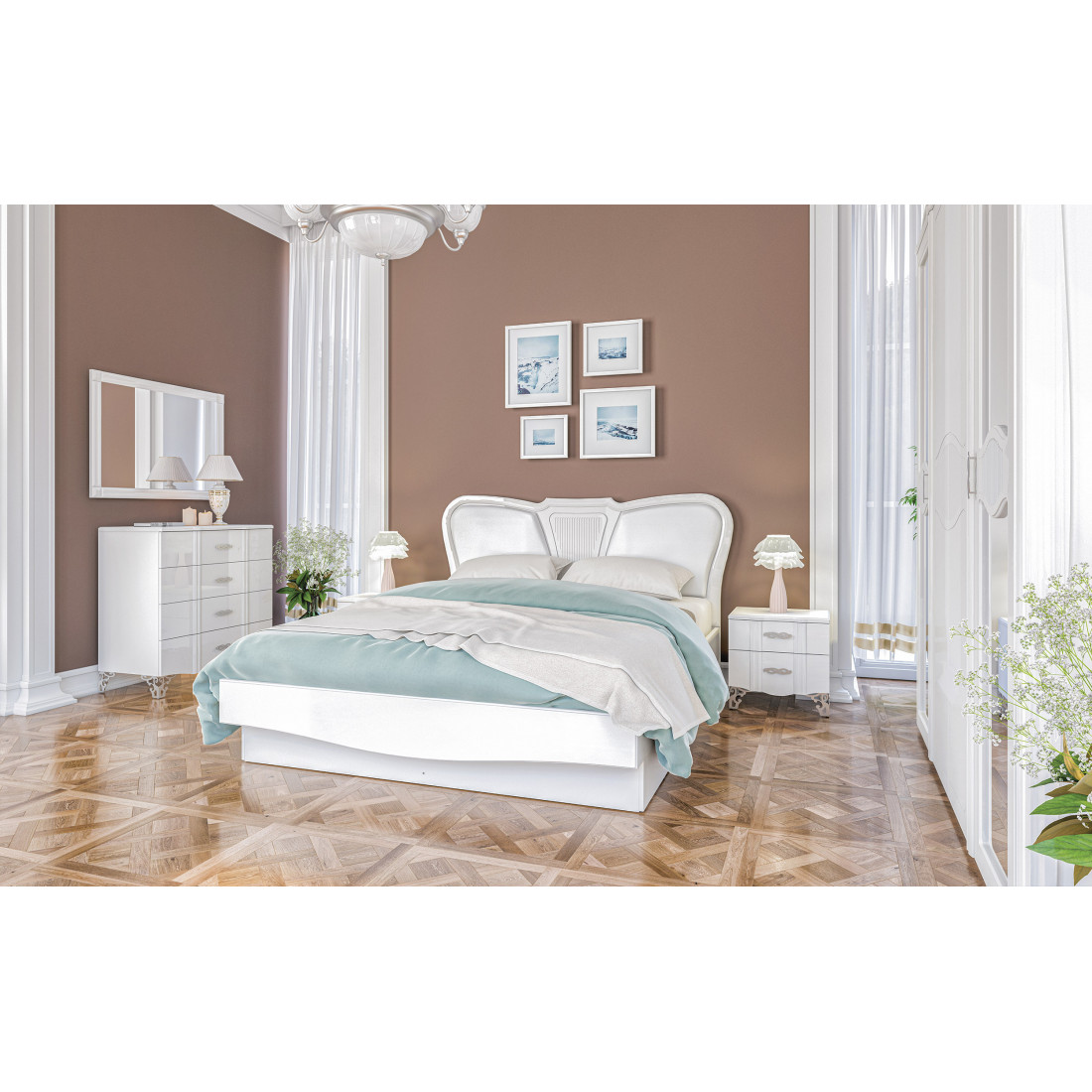 Прикроватная тумба для спальни МН-025-02 серии София (Мебель-Неман) выполнена в общем выдержанном элегантном стиле. Ажурные хромированные ножки дополнены не менее изящными ручками, светлый глянец поддерживает общую концепцию легкости и очарования. Купить прикроватную тумбу как элемент серии можно в единичном экземпляре или парно.