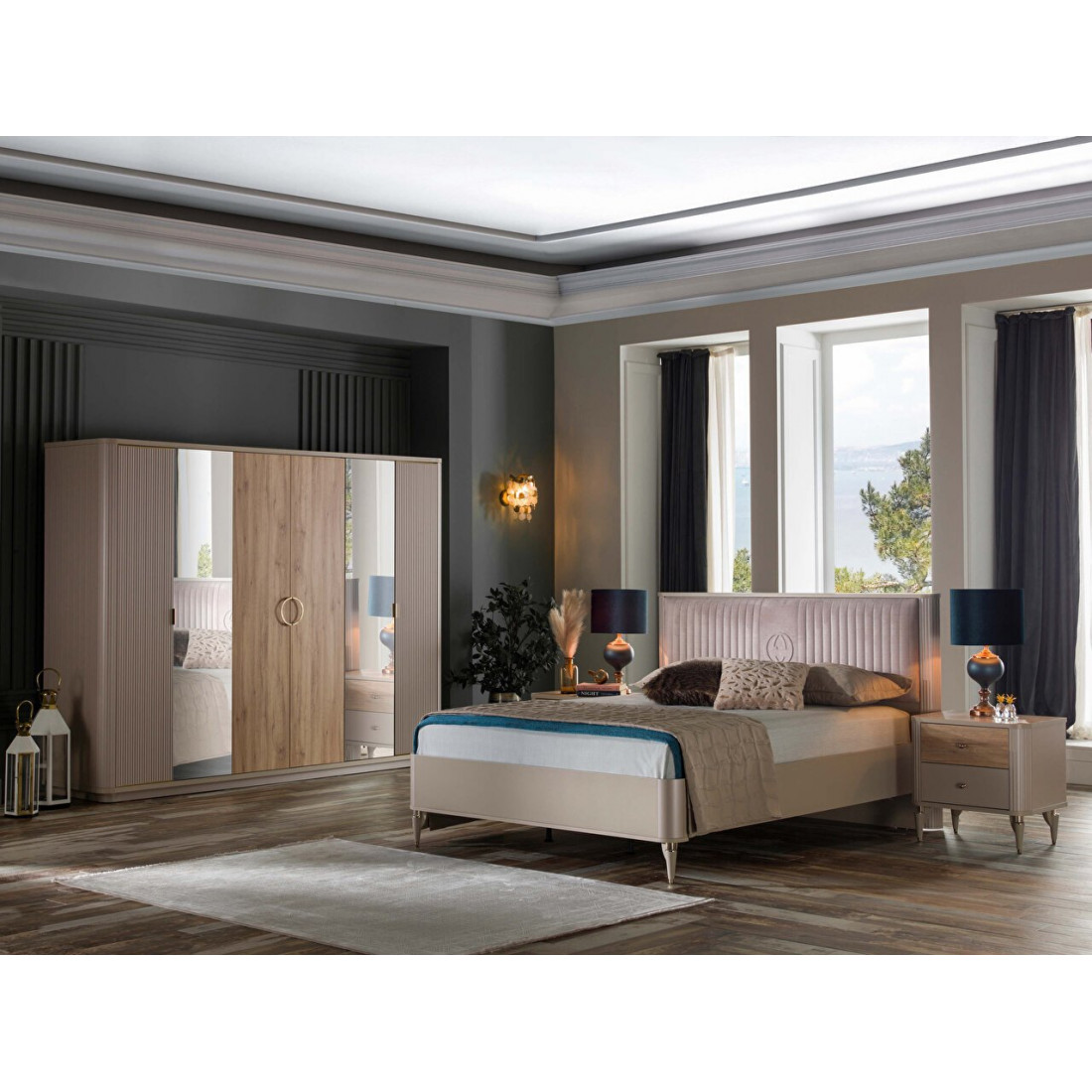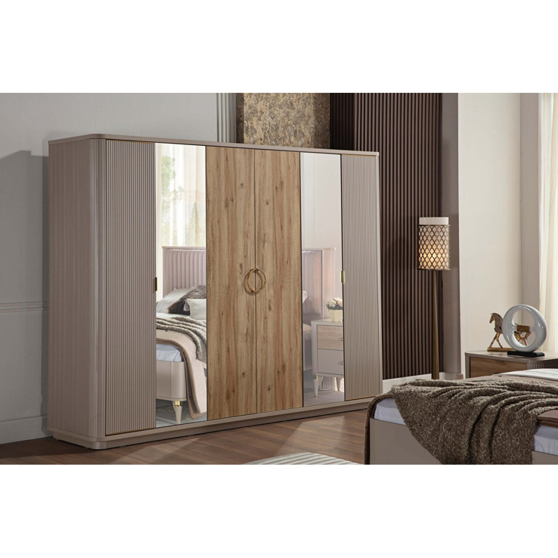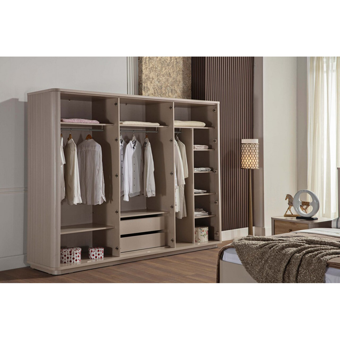 Шкаф прекрасно сочетается с другими предметами интерьера( тумбы прикроватные, кровать, комод, туалетный столик и др.) серии Санвито от турецкого производителя Беллона!