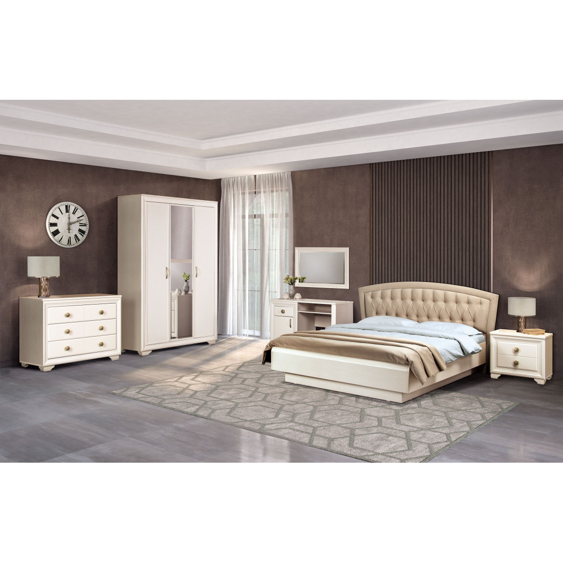 Корпус: ДСП, декор – кремовый белый. Основание кровати – ламели