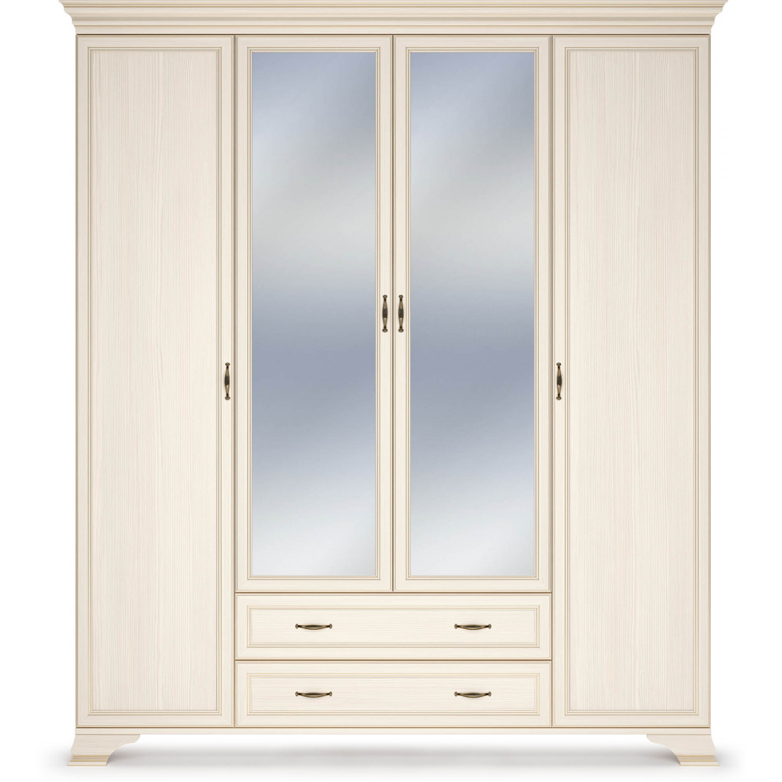 Четырехстворчатый шкаф для одежды с зеркалом Тиффани 4D2S крем вудлайн