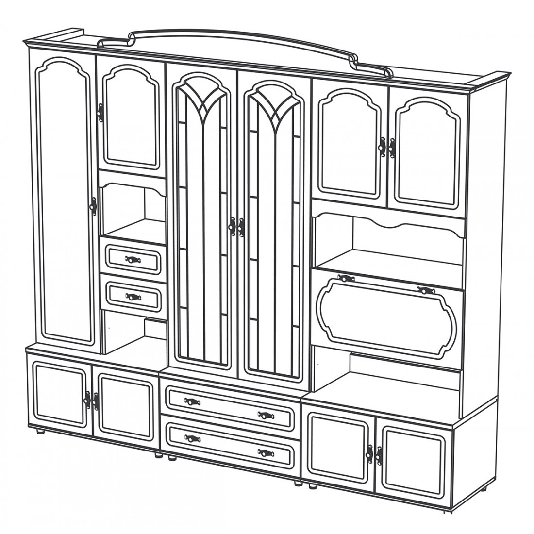 Стенка для гостиной Романтика ВК-09.2, цветовое исполнение орех структурный.
