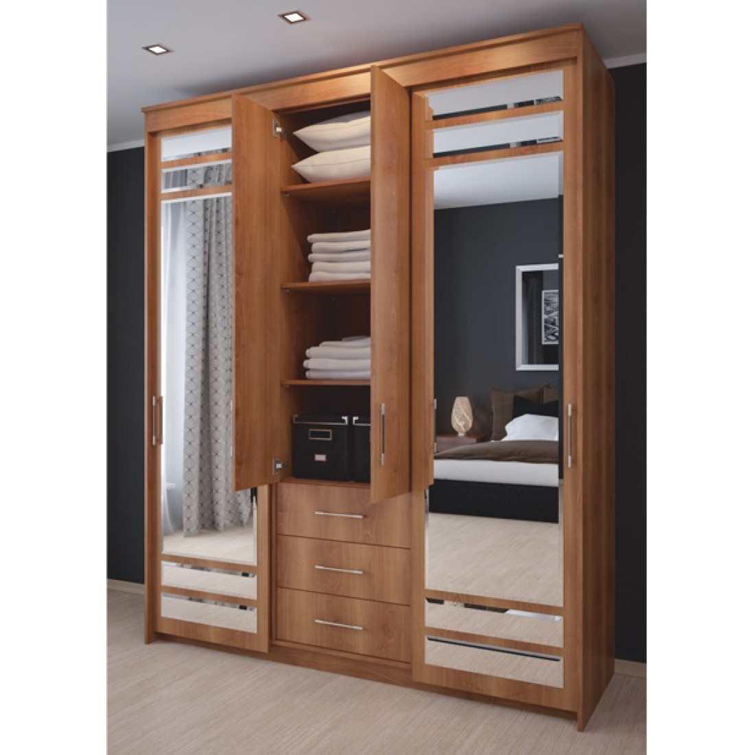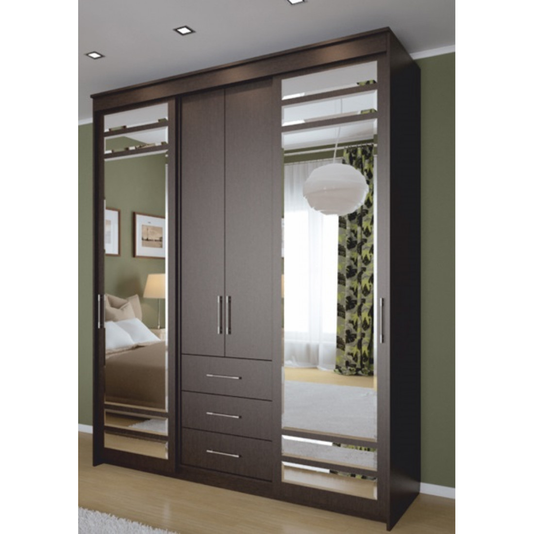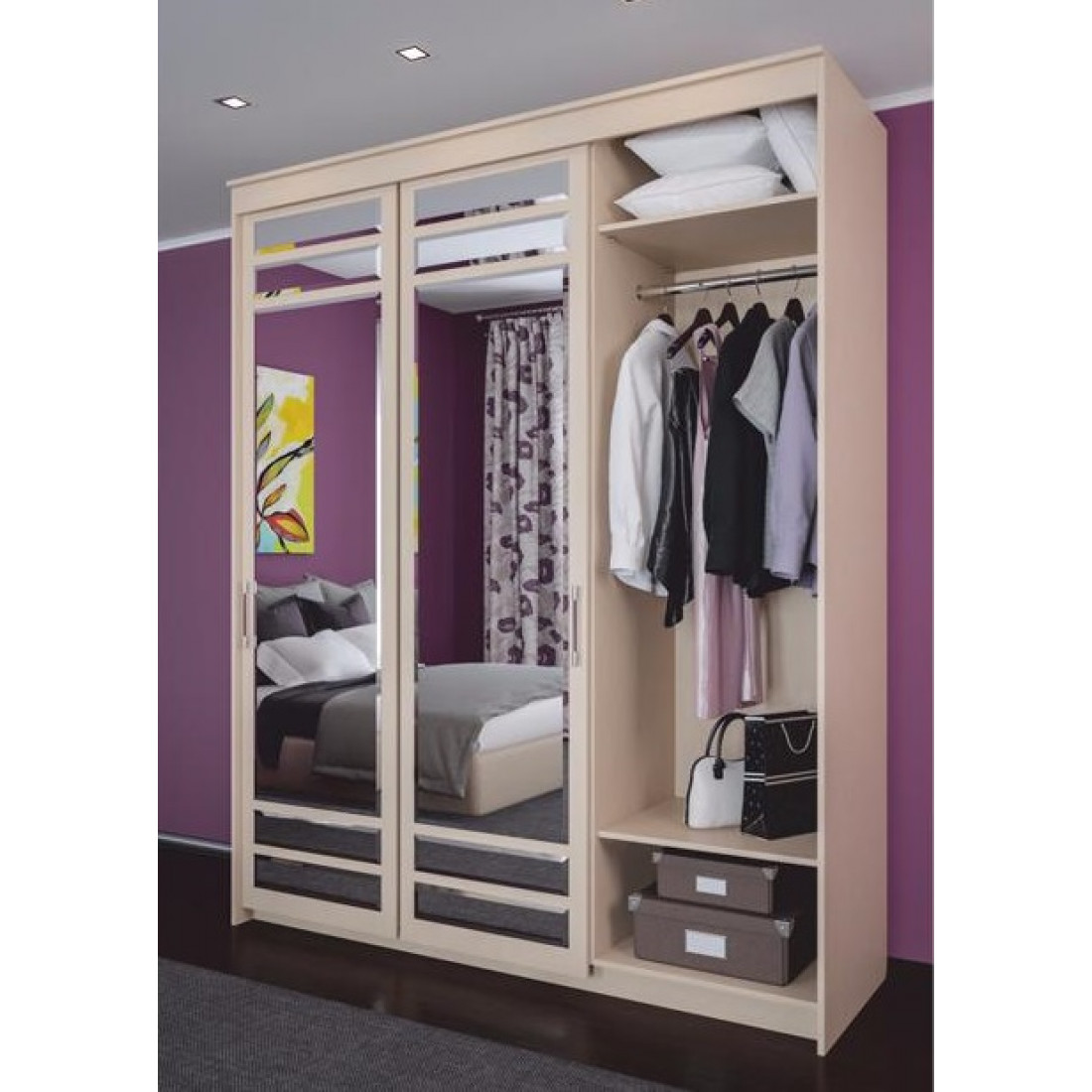 Хотите приобрети вместительный шкаф-купе, который сможет надежно хранить всю вашу одежду и обувь, при этом будем компактным и современным? Тогда обратите внимание на шкаф-купе ШК-05, который обладает всеми этими признаками. Он состоит из двух объемных отделений со штангами, в которых вашей одежде любой длины будет «удобно», нижних отделений для коробок с обувью, верхних полочек для головных уборов. Среднее отделение состоит из горизонтальных полочек и выдвижных ящиков. Оценить свой образ вы сможете в двух вертикальных зеркалах. Шкаф-купе ШК-05 может быть выполнен в трех модных цветовых решениях.