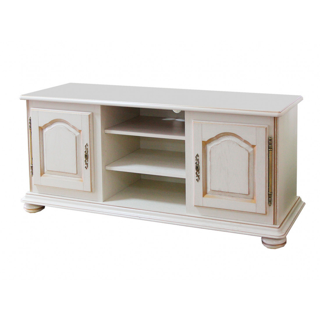 Надежная и практичная двухдверная тумба из коллекции "Давиль" отлично дополнит гарнитур гостинной в классическом стиле. Модель выполнена с использованием массива и шпона дуба и декорирована резьбой. Полки центрального отделения подходят для хранения телеаппаратуры. Выплнена в цвете "Белая эмаль".