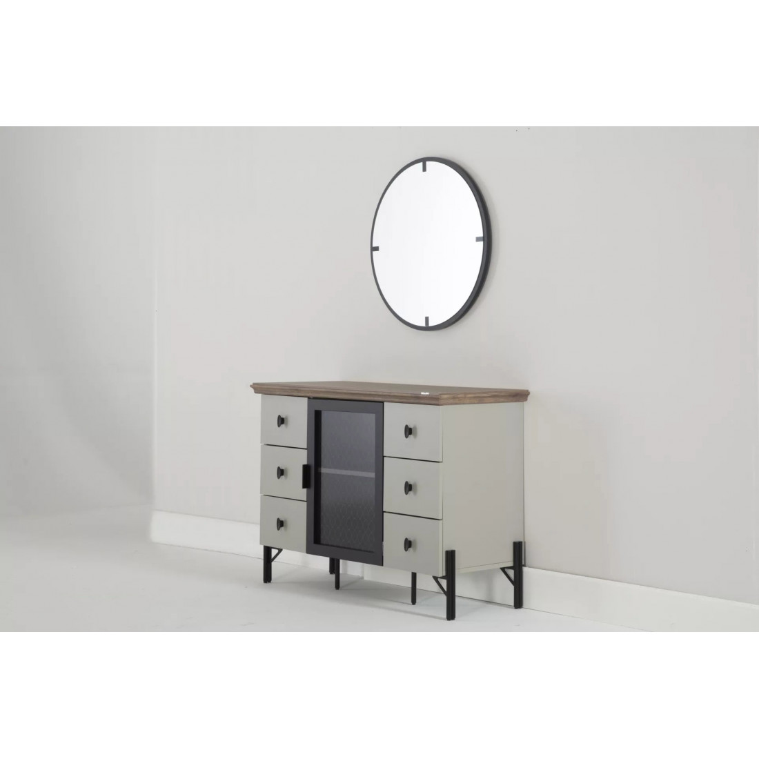 Круглое зеркало для туалетного столика "Палвин" выполнено в стиле лофт. Легко может быть использовано, как самостоятельный элемент интерьера Вашего дома.